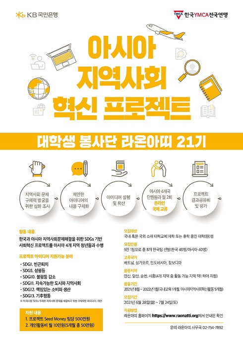 KB국민은행과 한국YMCA전국연맹은 2021년 아시아 지역사회 혁신을 위한
