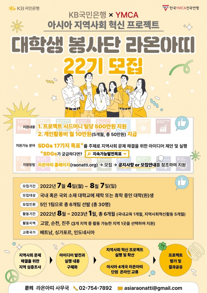 KB국민은행과 한국YMCA는 2022년 아시아 지역사회 혁신을 위한